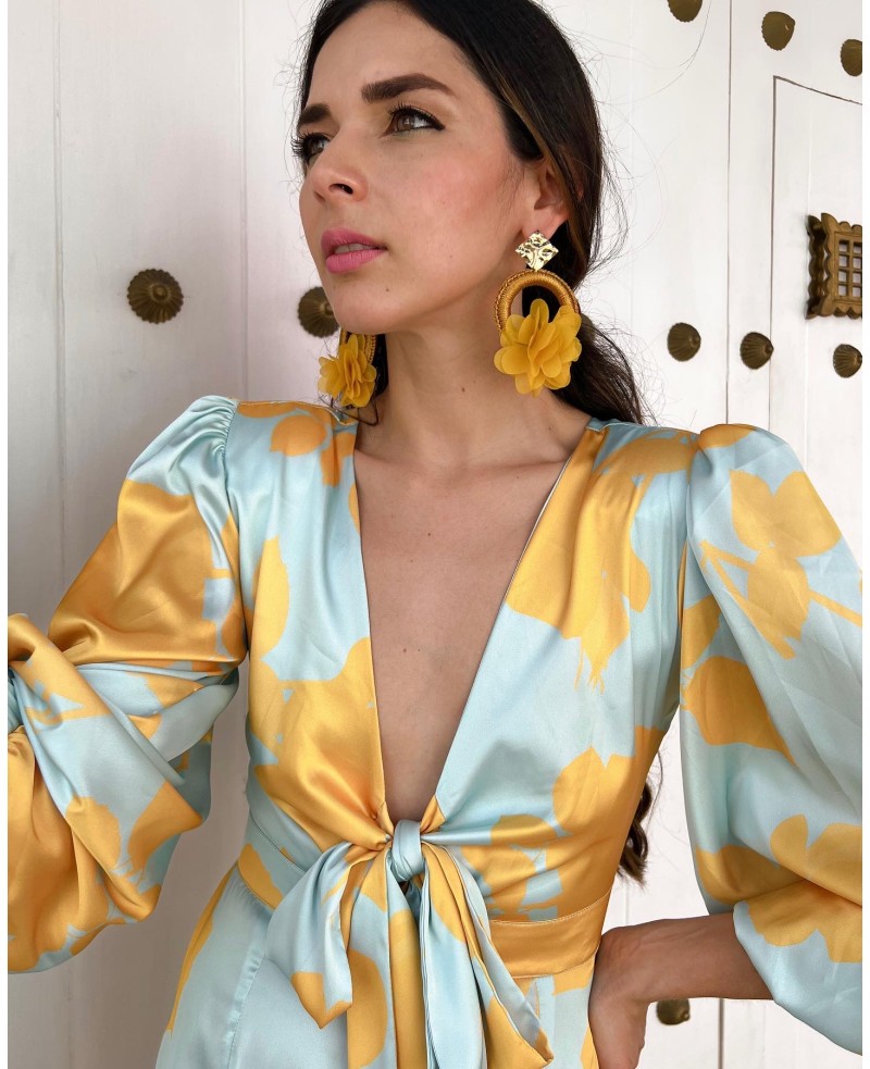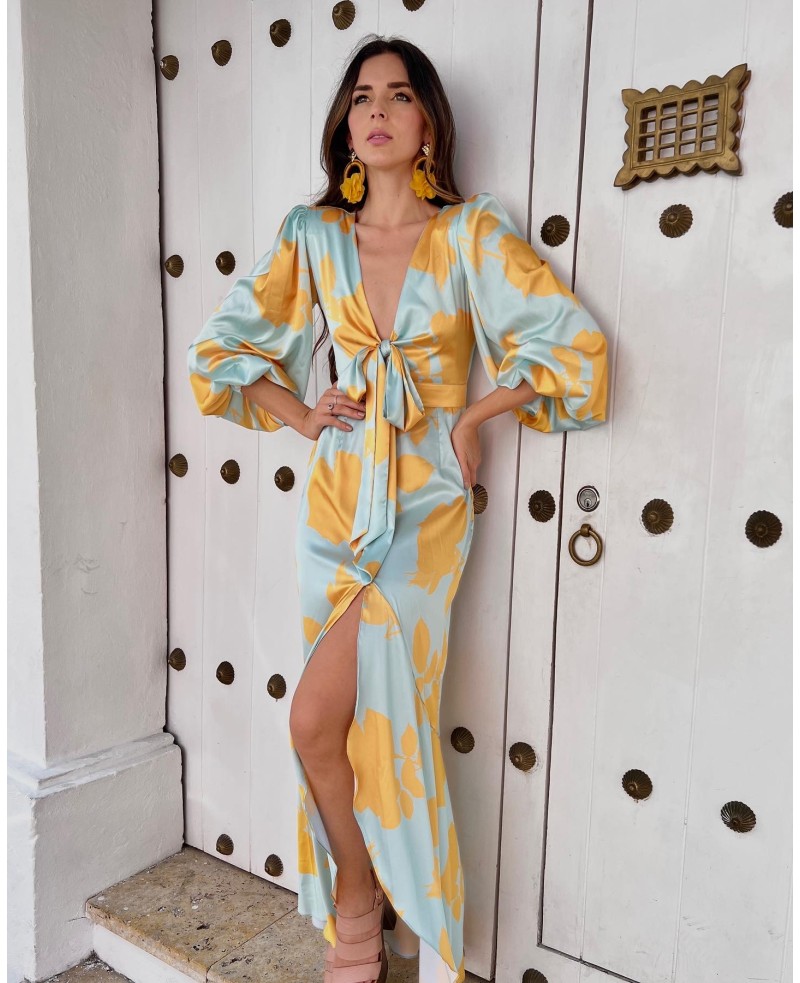 Vestido con nudo delantero, su tela es polyerter más 5%spandex lo que le hace tener un calce y movimiento perfecto.